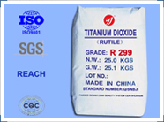 Rutile titanium dioxide pigment R299 is exclusive use for plastics, mainly applied in a broad range of plastics ( PVC, flexible PVC, PE, PS and PU,etc.), masterbatchs, polyolefin thin film, ABS engineering plastics, also be available in rubber, printing ink and leather color paste.